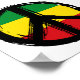 Peace Symbol mit Retgae-Stil. Friedenssymbol mit Reggae Flaggenfarben. Friedenszeichen mit rastafari Fahnen Farben. Reggae inspiriert Design. Reggae-Kultur, Rasta-Kultur, Rasta-Stil, Rasta-Farben, Dreadlocks, Jamaica-Stil.