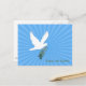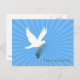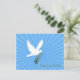 Weiße Taube mit Zweig auf strahlend blauem Hintergrund sendet eine Botschaft des Friedens in dieser Ferienzeit.