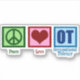 Peace Liebe Occupational Therapy Aufkleber für Ihren Lieblings-Berufstherapeuten. Ein Friedenszeichen, ein Herz und die Briefe OT sind ein großartiges Geschenk für alle Berufstherapeuten in Ihrer Praxis oder Ihrem Büro