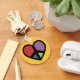 Ein Zeichen der Stille in Herzform mit roter, lila, grüner und blauer Schattierung auf gelbem Hintergrund.