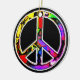 Ein farbenfrohes Friedenszeichen auf schwarzem Hintergrund.
