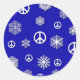 Friedenszeichen und Schneeflocken Runder Aufkleber