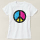 Groovy Friedenszeichen-T - Shirt. Das Friedenszeichen wird mit den blauen, roten und gelben Segmenten gefüllt. Entwurf wird für einen groovy, Vintagen Blick verkratzt. Ein cooler FriedensT - Shirt!