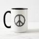 Dieses Design ist mit einem schwarzen Friedenszeichen mit weißen Blume geschmückt.