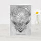 Eine dunkle und makabre gefaltete Grußkarte mit einem schweren Metall vampirischen Totenschädel.