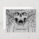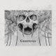 Eine düstere und makabre Grußkarte mit einem schweren, aus Metall inspiriert vampirischen Totenschädel. Diese in einem gotischen, dunklen Fantasiegrafik-Stil gezeichnet Grußkarte hebt sich von der Masse mit einem unverwechselbar einzigartigen und erkennbaren Sketch-Stil und gruseliger gotischer Atmosphäre ab.