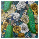 Handgezeichnet Muster mit Pfauen und verschiedenen Rose auf dunklem Hintergrund