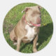 Ein Bild von meinem Pitbull, Sasha, sitzt friedlich.