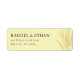 Diese Rückadressetiketten haben ein warmes, einladendes Design mit einem beigen Hintergrund und eleganten Weizenhalm-Illustrationen auf der rechten Seite. Das Layout ist einfach, aber dennoch elegant, mit fetter Serif-Typografie zur Anpassung, wodurch eine klassische und friedliche Ästhetik entsteht. Perfekt, um Ihren Briefen einen Hauch von Tradition zu verleihen, sind diese Etiketten ideal für diejenigen, die dezente Eleganz in ihrer Korrespondenz schätzen.