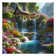 Friedliche Bergkabinen Wasserfälle Blume Fotodruck