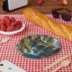 Friedliche Bergkabinen Wasserfälle Blume Pappteller