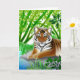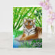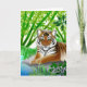 Ein Junge Sumatran Tiger sitzt durch einen friedlichen Dschungelfluß in diesem ursprünglichen Entwurf durch Illustrator/Designer Carolyn McFann zwei des schnurrenden Katzen-Studios.
