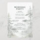 Dieses Hochzeitsprogramm verfügt über ein ruhiges, naturinspiriertes Design mit einem vertikalen Layout und sanften Pastellfarben. Der Hintergrund ist hellbeige, ergänzt durch gedämpfte Grün- und Grautöne in Aquarellbaumillustrationen, die eine ätherische Atmosphäre schaffen. Elegante Typografie hebt die Details der Veranstaltung hervor, mit anpassbaren Platzhaltern für Namen, Daten und Orte, die Klarheit und Raffinesse gewährleisten. Der Gesamtstil ist minimalistisch und ruhig, perfekt für die Feier einer formellen Hochzeitszeremonie, umgeben von natürlicher Schönheit.