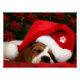 Ein wunderschönes Bild eines schläfrigen Hundehundes unter einer Weihnachtsmannmütze.