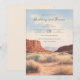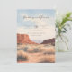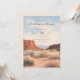 Diese Hochzeitseinladung zeigt eine ruhige Wüstenlandschaft mit warmen Erdtönen in sandigem Beige, hellbraun und gedämpften Rottönen, die eine einladende Atmosphäre schaffen. Das Design verwendet eine digitale Illustrationstechnik, die ihm eine weiche, verschwommene Textur verleiht und die ruhige Stimmung verstärkt. Elegante Kursivschrift und saubere Serifenschrift sind mittig gegen den Himmel ausgerichtet, während Motive von Felsformationen und Grasbüscheln einen organischen Charme hinzufügen. Der Gesamtstil verbindet rustikale und moderne Elemente und weckt Gefühle von Wärme und Ruhe, perfekt, um einen besonderen Anlass zu feiern.