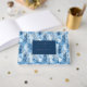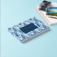 Dieses Hochzeitsgästebuch zeigt ein ruhiges, winterliches Waldthema mit stilisierten immergrünen Bäumen in verschiedenen Blautönen, die eine frostige Atmosphäre schaffen. Das Design enthält ein zentriertes, marineblaues Rechteck mit eleganter Serif-Typografie für Namen und Datum, was dem modernen Layout eine formelle Note verleiht. Die kühle Farbpalette und die sauberen Linien rufen ein Gefühl von Ruhe und Feierlichkeit hervor und machen es perfekt, um Erinnerungen auf einer winterlichen Hochzeit festzuhalten.