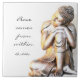 Friedlicher silberner Buddha mit Wörtern von Fliese