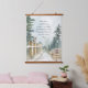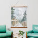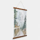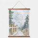 Verändern von Tapisserie mit friedlicher Aquarelllandschaft-Szene, die Sie mit Ihrem eigenen Text anpassen können, oder löschen Sie den Beispieltext, wenn kein Text erforderlich ist. Das Design umfasst einen Winterwaldspaziergang mit einer Eule und einem Vogelleben auf den Zaunpfosten.