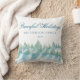 Friedlicher Winterwald Wasserfarben Weihnachtskissen. Wasserfarbe zeichnend von einem Wald im Winter und Schnee, Winterbäume mit Schnee in blau und grün. Das Design ist friedlich und ruhig mit Text in einem trendigen Skript. Passen Sie Ihren Namen und das Jahr an und machen Sie ein schönes Weihnachtsgeschenk und einen Sake für Ihre Familie und Freunde.