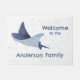 Doormat Motiv mit einem Wasserthema. Ein großer freundlicher Stingray in blau. Fügen Sie Ihren Familiennamen hinzu und machen Sie ihn zu einem Blickfang in Ihrem Eingang.