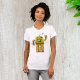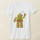 Roboter können so freundlich sein, wie dieses Design beweist. Dieses Design ist ein freundlicher Roboter, der stehend und winkend ist. Der Roboter ist Gold und hat einen grünen Knopf auf seiner Brust und grüne Augen. Dieses freundliche Roboterdesign sieht auf diesem weiblichen T - Shirt großartig aus. Perfekt für sich selbst oder als Geschenk