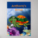 Just swimming along . .. enjoying the beautiful under sea world, this adorable stained glass looking turtle poster would be a perfect addition in a ocean/sea life themed nursery or child's room. Change the child's name for extra personal touch. or remove completely.