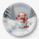 Friendly Snowman with a Red Shovel Pappteller