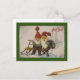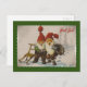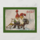 Niedliche, weiße Bartome (Dinge oder Tomten) in roten spitzen Hüten stehen mit Schlitten und Weihnachtsgeschenken.