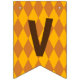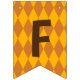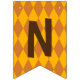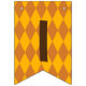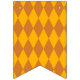 Banner mit einem abgefallenen Raute-Druck (technisch ein harlequin Diamant-Muster), das sagt Friendsgiving. Braun, gelb, Gold.