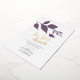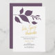Do Tell A Belles schlichte lila und weiße Blätter, die mit einem Top-Reiter aus einfachen Blätter mit Goldfolie-Typografie aufwarten. Eine lila Pflaumenfarbe schmückt die Rückseite Ihrer Einladung. Eine rustikale und dennoch moderne Wahl für Ihr Erntedank Dinner Party oder Brautparty. Design und Kunst von Victoria Grigaliunas. Weitere Informationen unter www.zazzle.com/dotellabelle