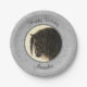 Schwarzes Friesisches Pferd mit einer langen, gewölbten Mähne mit warmen gelben Highlights aus dem späten Nachmittagssonnenlicht, alles auf einem silbergrauen Muster Hintergrund.