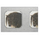 Schwarzes Friesisches Pferd mit einer langen, gewölbten Mähne mit warmen gelben Highlights aus dem späten Nachmittagssonnenlicht, alles auf einem silbergrauen Muster Hintergrund.