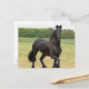 Schwarzes friesisches Pferd galoppieren auf einem Feld.