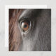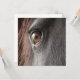 Schwarzes friesisches Pferdeauge nah oben auf einer Einladung.