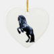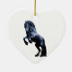 Friesisches Pferd, schwarzer Hengst, rotes Herz Keramik Ornament