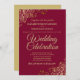 Diese schöne Hochzeitseinladung zeichnet sich durch ein schlichtes und dennoch elegantes Design aus, das auf einem Mond oder einem roten bordeauxfarbenen Hintergrund mit goldenen Imitaten und floralen filigranen Rändern steht. Willkommen bei Ihren Gästen, um Ihren besonderen Hochzeitsfeiertag mit diesen wunderschönen, raffinierten Einladungen mit Goldtext zu teilen. Eine Hochzeit ist eine einmalige Feier in einem Leben voller Liebe, Freunde und Familie. Mit diesen hübschen und stilvollen Einladungen machen Sie Ihre Nuptien zu einem unvergesslichen Erlebnis. Diese Einladung ist vollständig anpassbar, sodass Sie den Text ändern können, um Ihre Situation und Bedürfnisse Anzug. Konzipiert für die Koordination mit unserer Gold & Burgund Elegant Wedding Suite