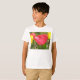 Dieses hübsche Blumenmädchen im Shirt zeigt ein Foto von rot-gelb gefangenen Tulpen. Das Foto wurde mit Makrofotografie gemacht, was zu so brillanten Details führte, dass man die kleinen Ränder und subtilen Veränderungen im Schauspiel auf der mittleren Tulpe sehen kann. Das Design wird hier auf einem Mädchen weißen Tee gezeigt, aber es ist auch auf anderen Stilen und Farben der Kleidung für Kinder, Babys, Frauen und Männer verfügbar.