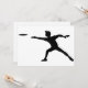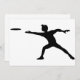 Frisbee zu spielen macht viel Spaß. Jung und Alt können teilnehmen. Sie können auch frisbee werfen konkurrenzfähig. Dieses Design zeigt einen Frisbees-Werfer in der Handlung des Werfens und wird in einem Silhouette-Stil gemacht. Dieses frisbee Design sieht gut aus auf diesen Einladungen