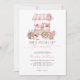 Sie ist frisch vom Markt! Eine süße Blumenwagen-Brautparty-Einladung in rosa Tönen.