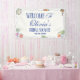 Frische Hochzeitsdusche-Fotokulisse mit handgezeichnetem Design Diese lustige Fotokulisse zeigt charmante Illustrationen von frischem Marktgemüse wie Karotten, Zwiebeln, Salat, Radieschen und Blumensträußen, umrandet von sanften Blautönen, Rosa-, Orange- und Grüntönen.