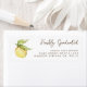 Verleihen Sie Ihrer Abschlusskorrespondenz einen frischen, fröhlichen Touch mit diesem Wasserfarben-Limonen-Rücksendeetikett. Die handgemalte Zitrusillustration und die saubere, moderne Typografie schaffen ein helles, aufmunterndes Aussehen, das perfekt zu Ankündigungen, Einladungen und Dankeskarten passt. Personalisieren Sie den Namen und die Adresse, um Ihren Umschlägen ein poliertes, koordiniertes Finishdetail zu geben.