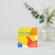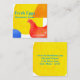 Eine farbenfrohe, quadratische Visitenkarte mit kühnen Farben und Formen mit einem roten Huhn, einem orangefarbenen Dreieck, einem gelben Quadrat und einem königsblauen Kreis, der mit Aquarellfarbe bemalt ist. Sie können den Text an Ihre Bedürfnisse anpassen.