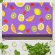 Entdecken Sie dieses hübsche Handtuch, das Sie für ein frisches Flair in Ihre Küchenabenteuer gestalten können. lass's! Dunkler und leichter lila Hintergrund mit gelben Zügen und einer farbenfrohen Auswahl an Sommerfrüchten - saftige Erdbeeren, zarte Zitronen, tangy Kiwis, erfrischende Grapefruits und lebendige Orangen - Sie werden bei jedem Verschleiß das Wesen sonniger Tage spüren. Der obere Teil, der durch eine fröhliche gelbe Linie gekennzeichnet ist, lasse Ihnen, das Küchentuch mit Ihren Initialen oder Monogramm zu personalisieren. Ein perfektes Sortiment mit der Schürze derselben Kollektion. Frisch, farbenfroh und fröhlich, um Glück und Freude in die Küche zu bringen!