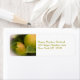 Adressetiketten mit einem wunderschönen Foto eines Äpfelpaares, das noch auf dem Baum liegt, eingebettet in die grünen Blätter. Regentropfen bedecken ihre Haut. Die Äpfel reifen und haben eine schöne Farbmischung, die von hellgrün bis orange und rot reicht. Ein frisch aussehendes Foto mit einer weichen, scheußlichen Grenze, das ihm eine traumhafte Qualität verleiht.