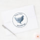 Fügen Sie Ihren Namen oder landwirtschaftlichen Namen zu diesem Design hinzu und Sie haben eine niedliche Möglichkeit, Ihre Farm frische Eier oder Eierschachteln zu signieren. Dieses Design zeichnet sich durch eine delft blaue Legehenne und benutzerdefinierten Text mit einem doppelzeiligen Rand aus. Ändern Sie den Text in Ihren eigenen.