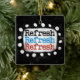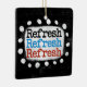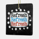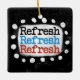 Ein niedliches typografisches Design, das "Refresh Refresh Refresh Refresh" sagt. Es ist schwarzer, roter und blauer Text auf einem weißen Rechteck mit funky, spielerisch weißen Punkten, die ihn umgeben, alles auf einem schwarzen Hintergrund.