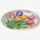Ein elegantes Design mit farbenfrohen Tulpen, Grünpflanzen und goldenem Rahmen am Rand!