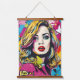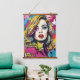 Frische Retro Pop Portrait Wandteppich Mit Holzrahmen