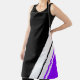 Dieses sportliche Design zeichnet sich durch weiße diagonale Rennstreifen gegen pulsierende schwarze und leuchtend lila Hintergründe aus.