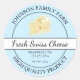 Frische Schweizer Käse Blaue Kennzeichnung Runder Aufkleber